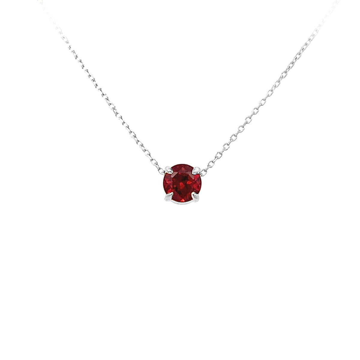 14k white gold 18" 6mm round garnet slide-through solitaire pendant