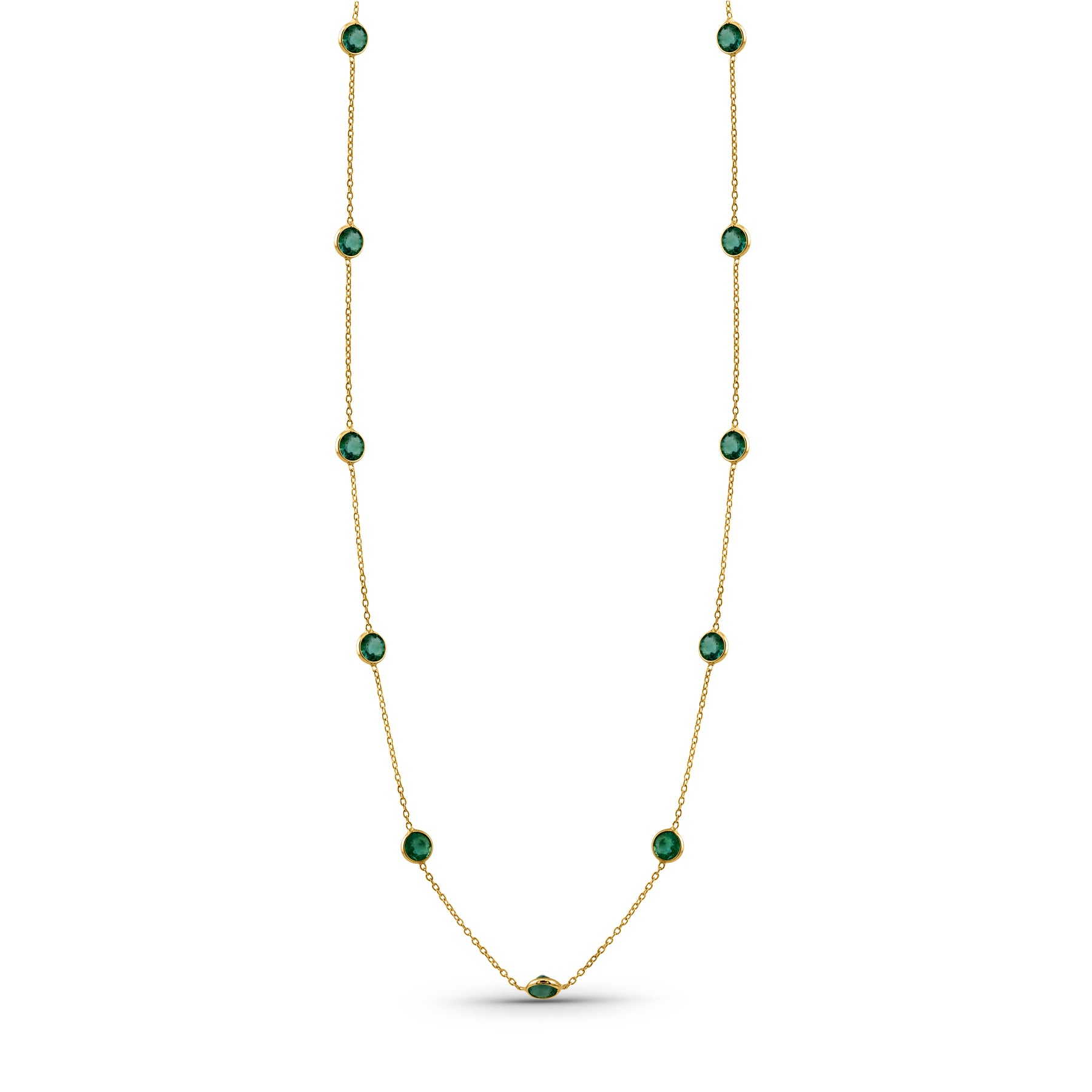 18kt Yellow Gold 18" Necklace By Tresor Collection With 3.49cts Round Emerald Stations