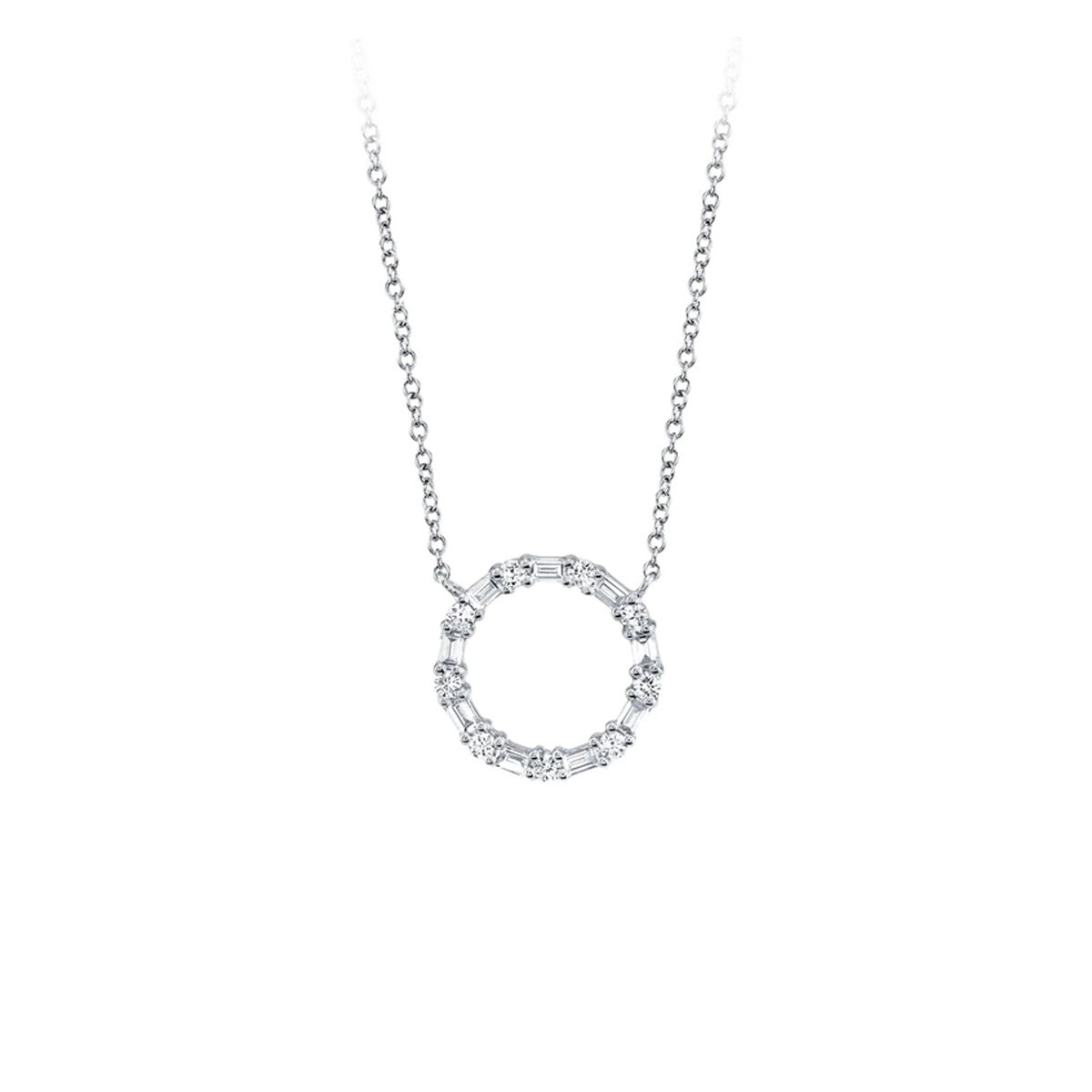 14k white gold 15-18" 0.29ct baguette and round diamond open circle necklace