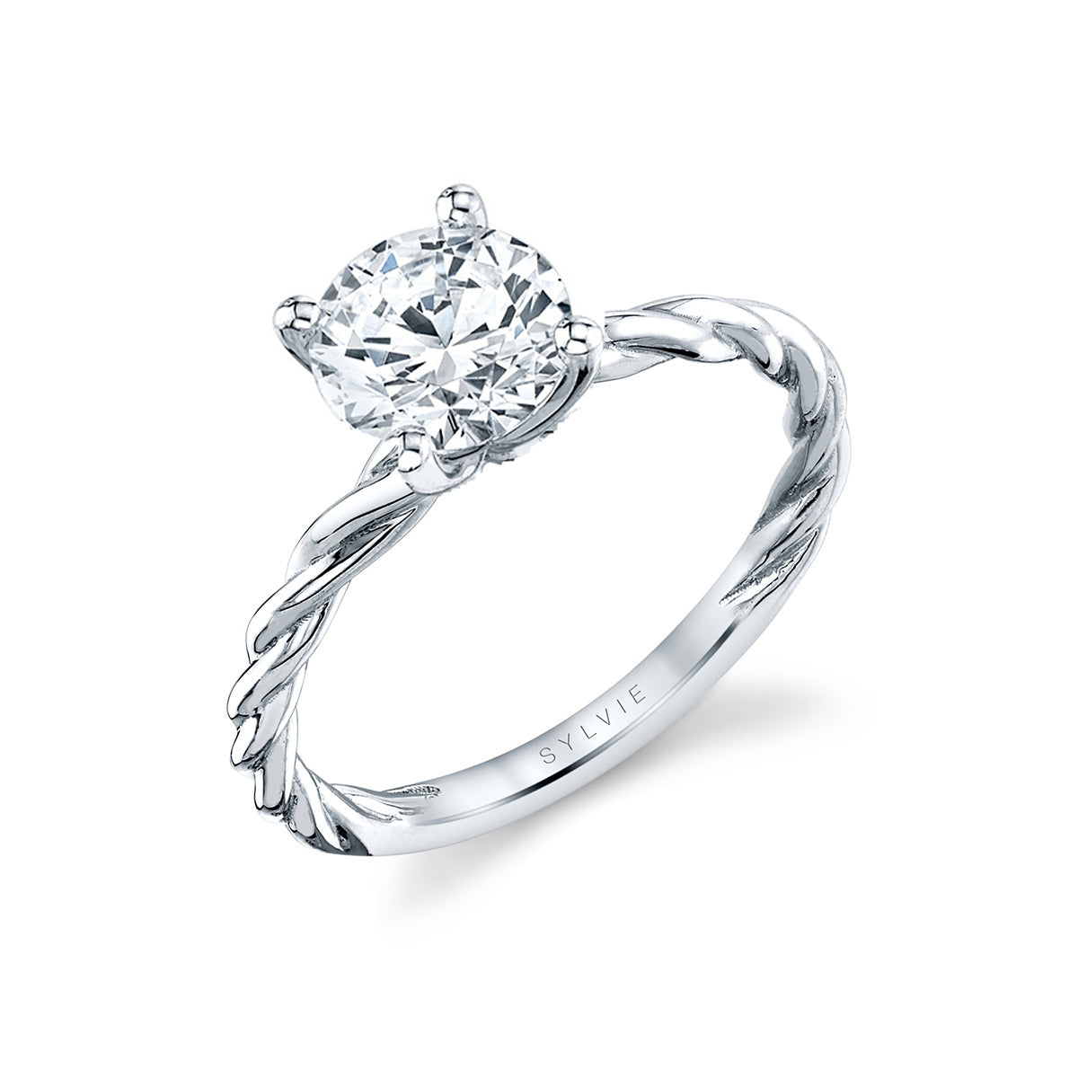 14k white gold "Jolie" solitaire ring mounting with twisted shank and 4-prong 1.5ct head, Size 6.5 (center stone not included)