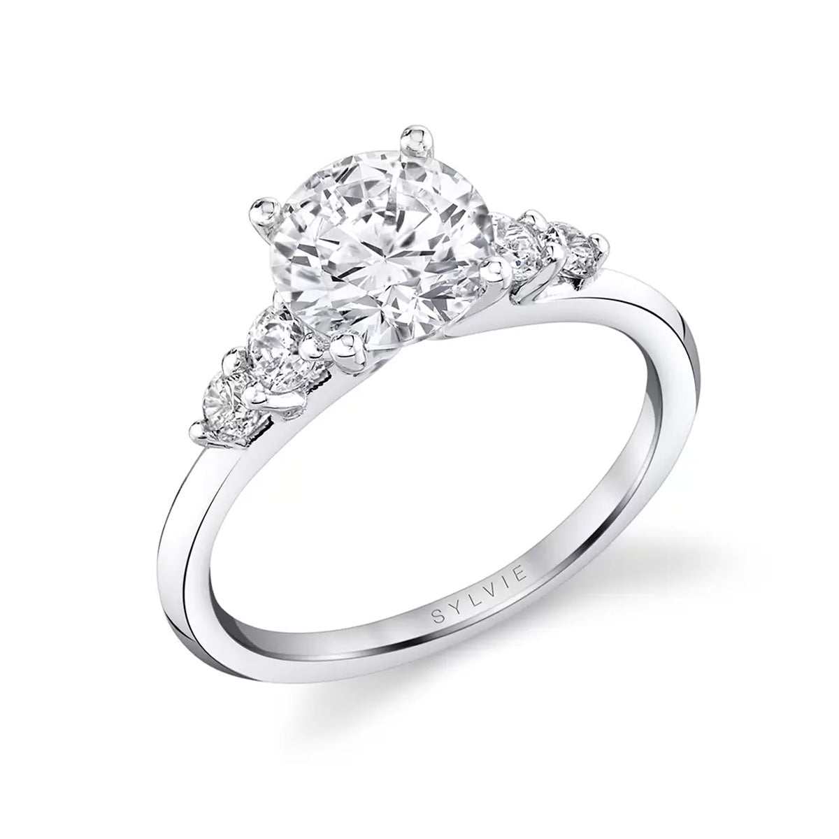 14k white gold engagement ring mounting with 0.33ct graduated diamond shank & 1.25ct round setting, size 6.5