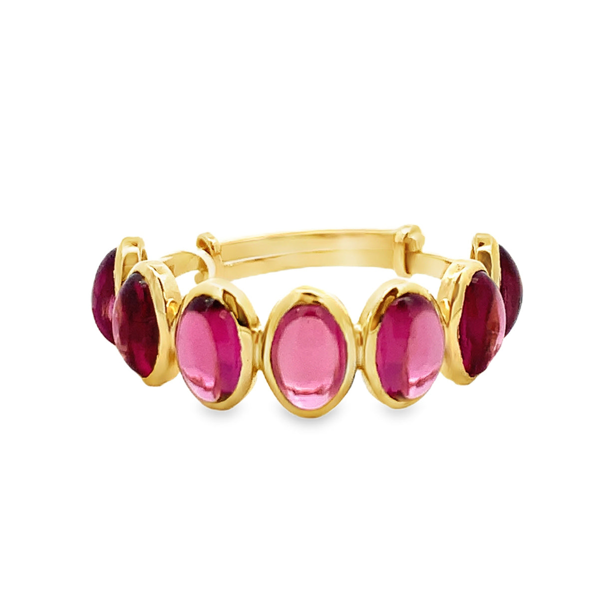 18kt Yellow Gold 7-Stone Cabochon Oval 4.59cts Pink Tourmaline Band Ring By Tresor Collection, Size 6.5