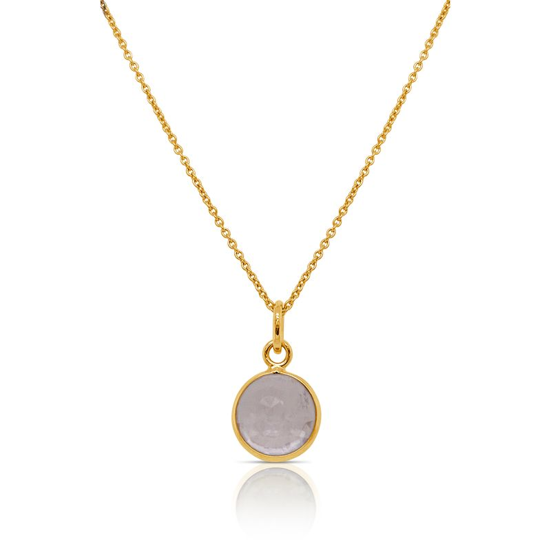 18kt Yellow Gold 18" Bezel-Set 6.5mm Cabochon White Topaz Solitaire "Astro" Necklace By Tresor Collection