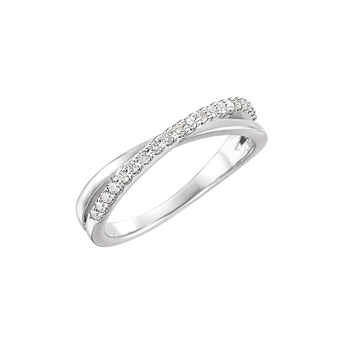 14KW GOLD 0.18CT LAB GROWN DIAMOND CRISS-CROSS RING, SIZE 7.5