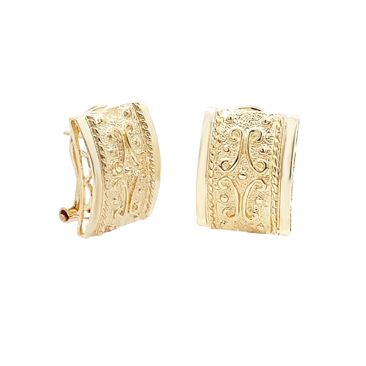 14kt yellow gold Vintage rectangular "Byzantine" style earrings with posts and clips