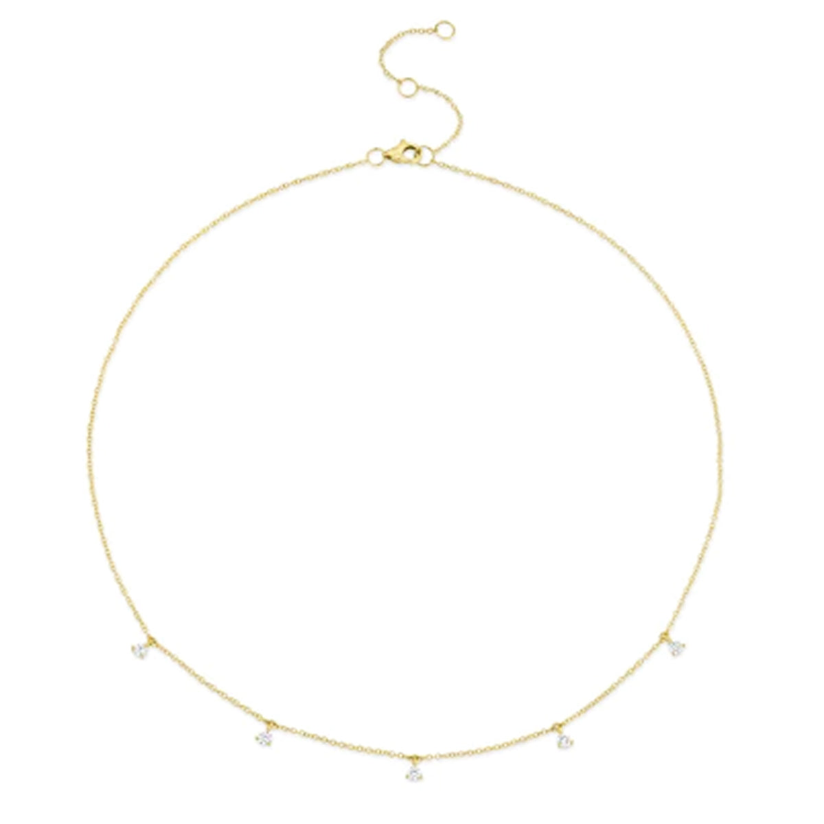 14k yellow gold 18" necklace with .30ct 5-diamond drops