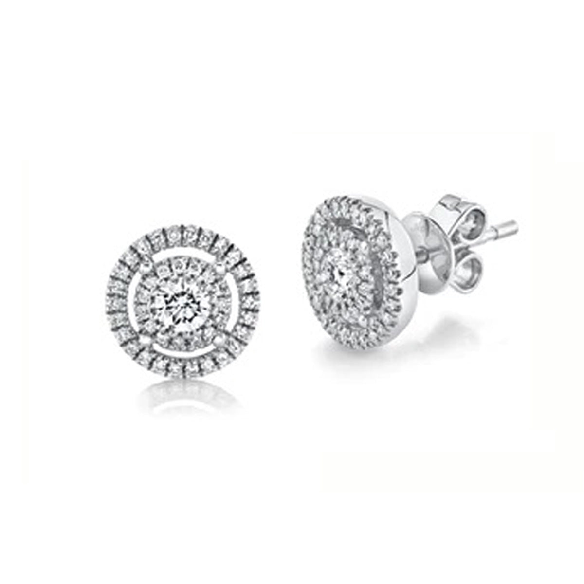 14k white gold 0.44ct diamond round double halo stud earrings