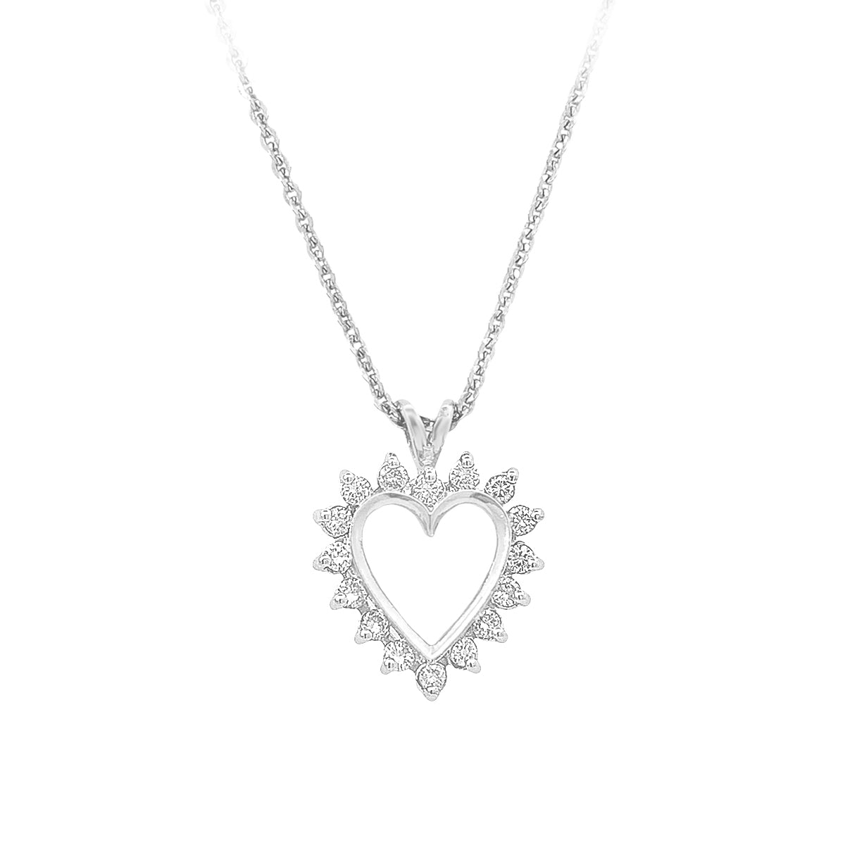 14k white gold 17" Vintage 0.48ct prong-set diamond heart pendant