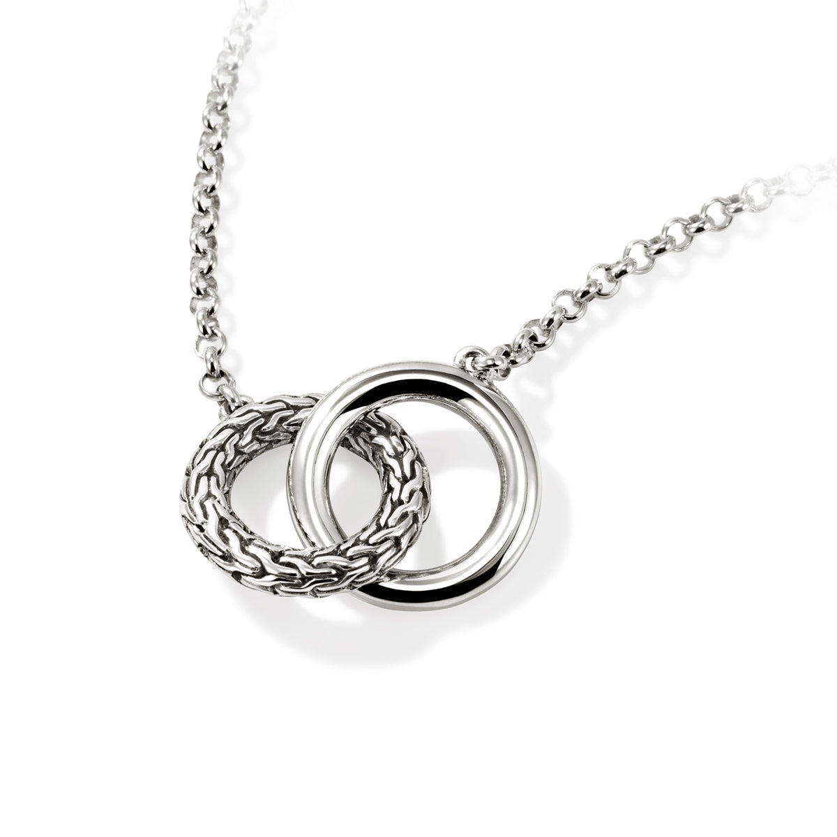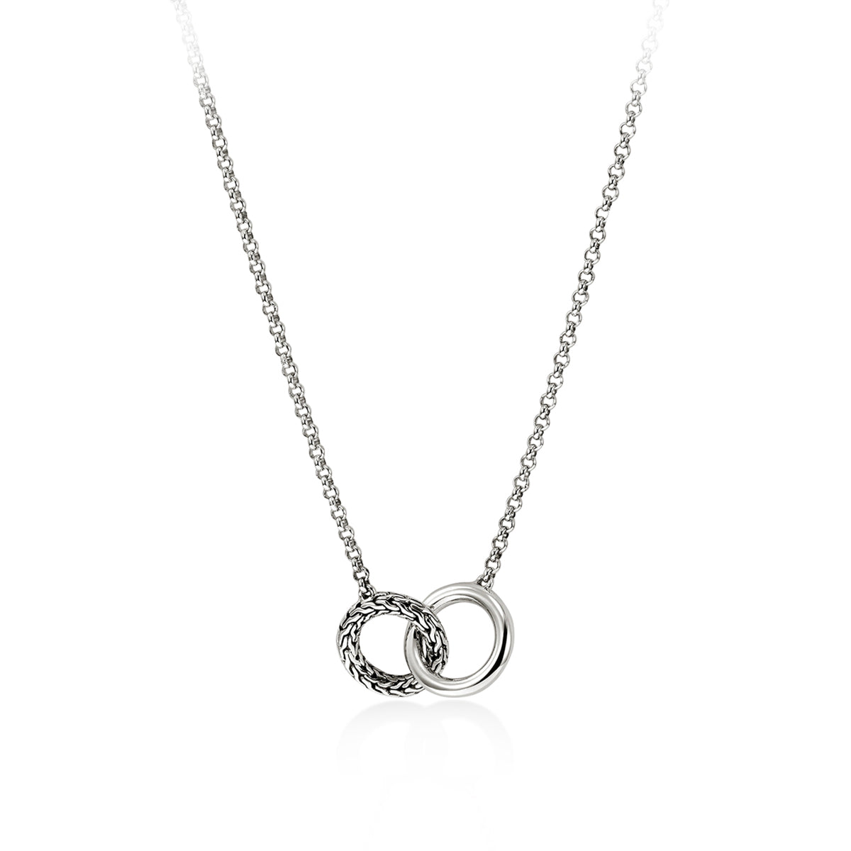 Sterling silver 16-18" John Hardy "Interlocking Circles" necklace on 2mm mini Rolo chain