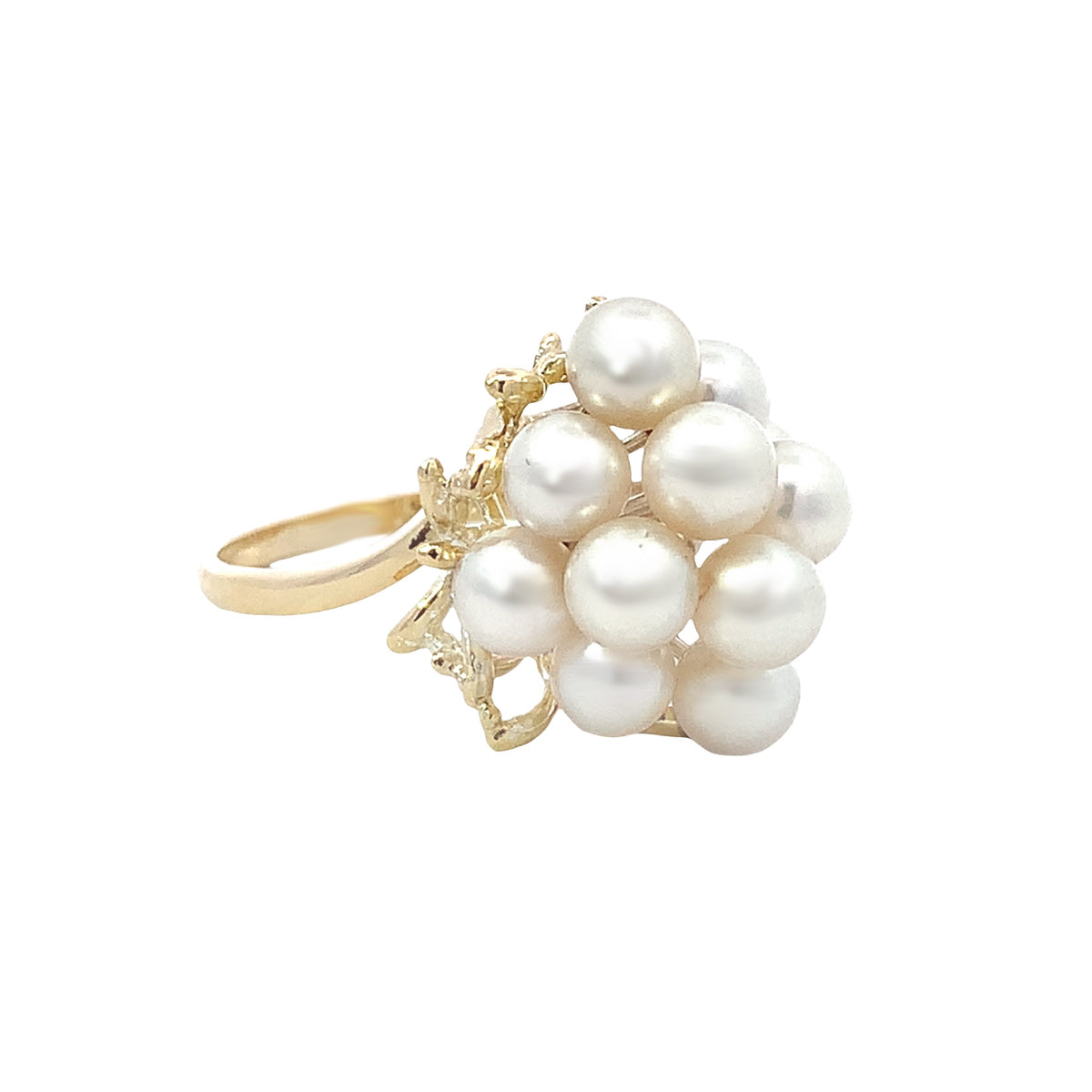 14kt yellow gold Vintage 12-pearl cluster ring, size 7