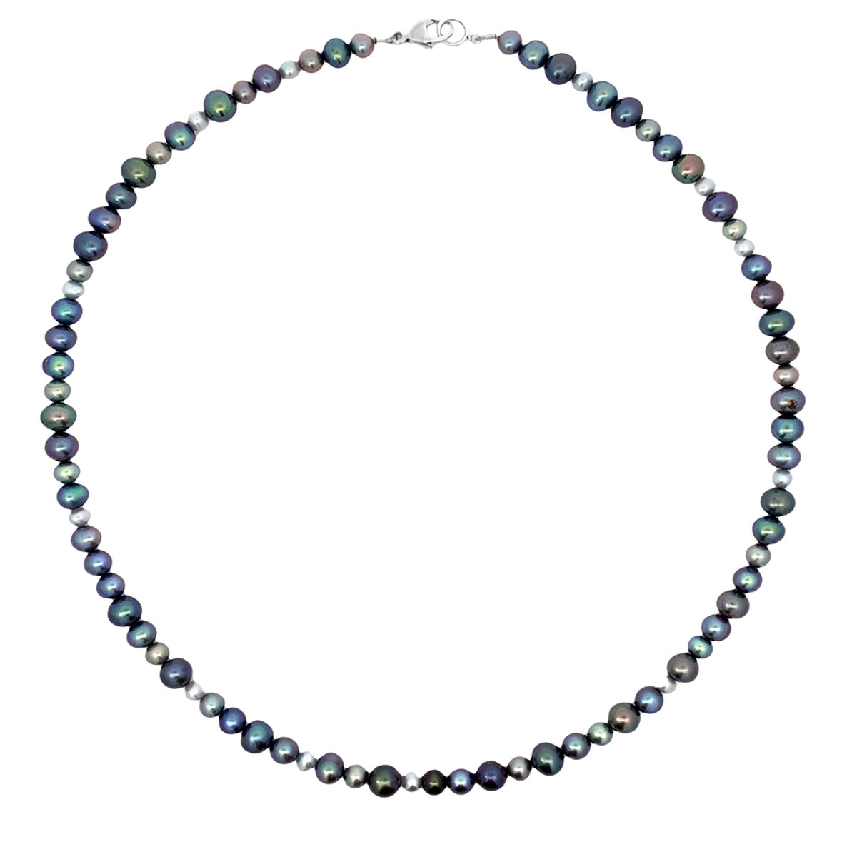 Sterling silver 17" strand of dyed 3.7-6mm black Akoya cultured & Freshwater pearls