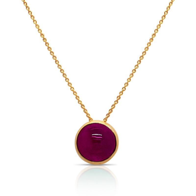 18kt Yellow Gold 18" Bezel-Set 6.5mm Cabochon Pink Tourmaline Solitaire "Astro" Necklace By Tresor Collection