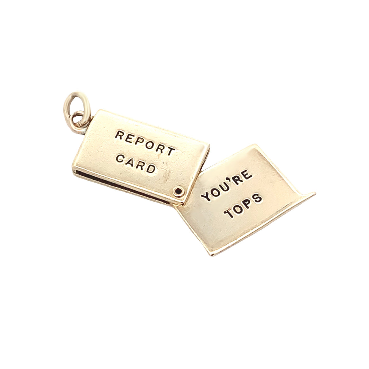 14kt yellow gold small "Report Card" charm with "You're Tops" card inside
