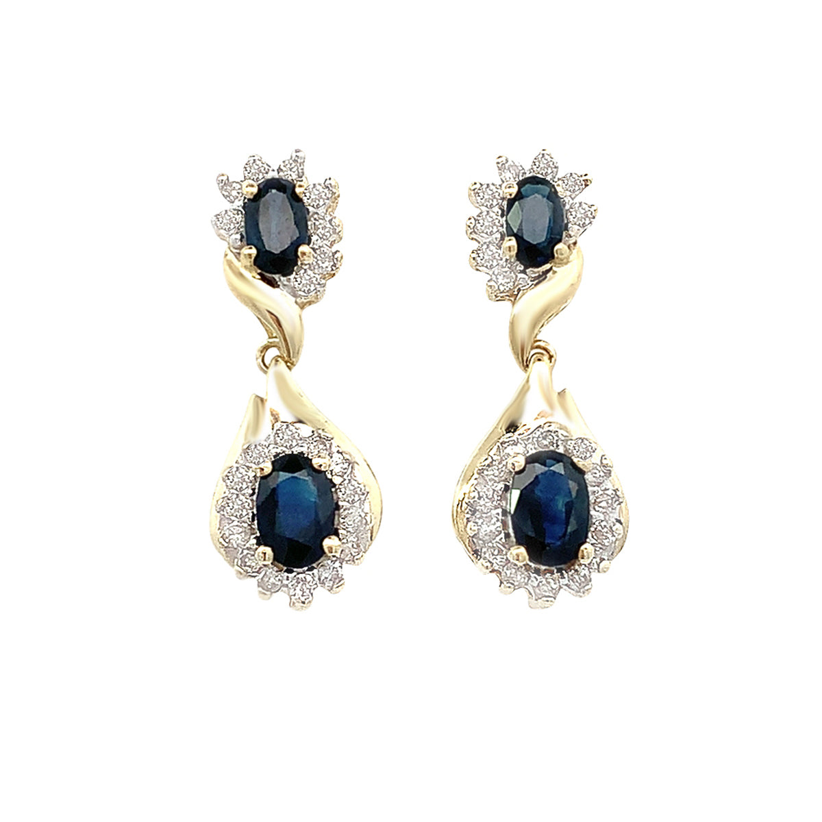 14kt yellow gold Vintage 2-sapphire double halo drops with 0.28ct diamonds