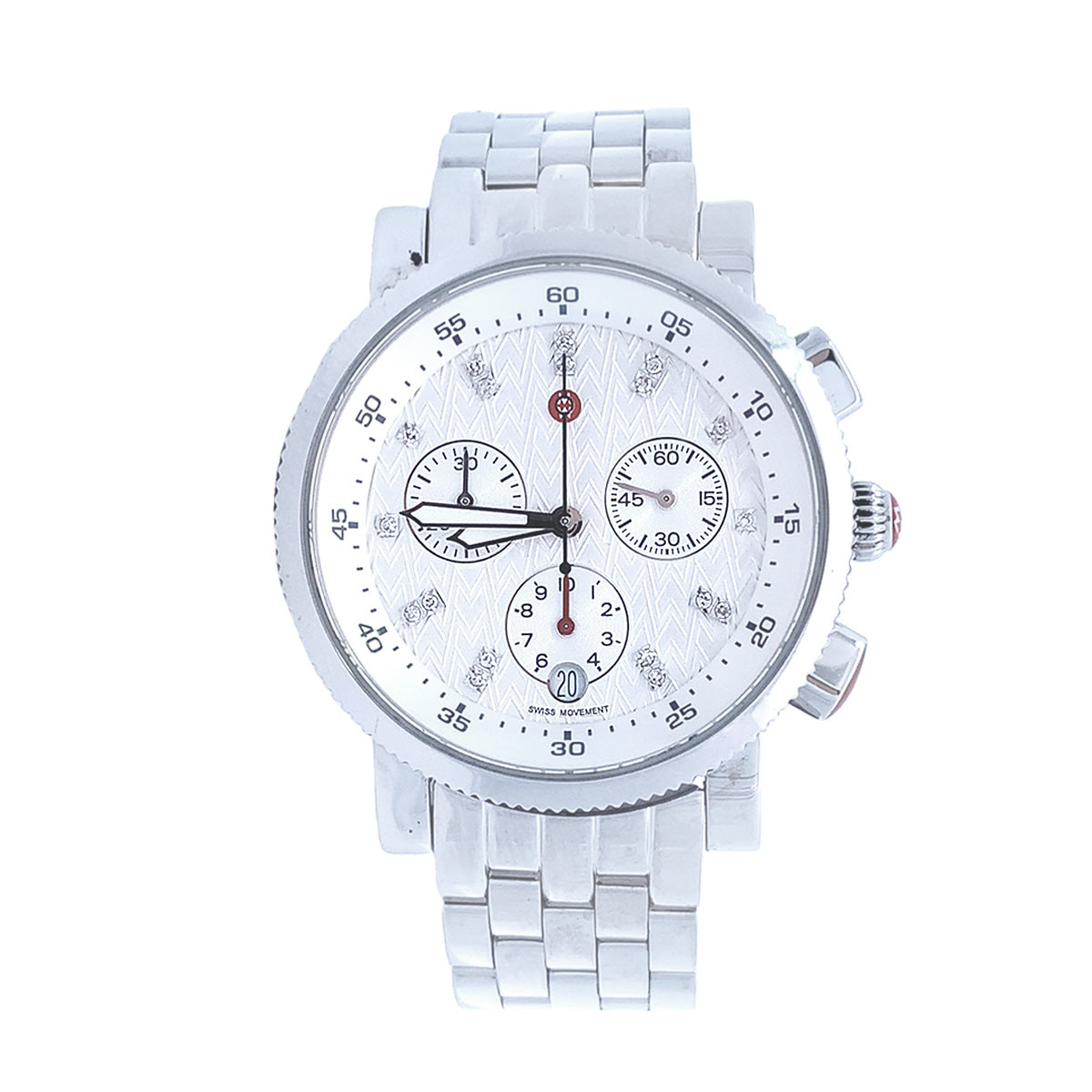 Stainless steel lady's Vintage Michele "Sport Sail" chronograph watch with 0.07ct diamond dial & bracelet