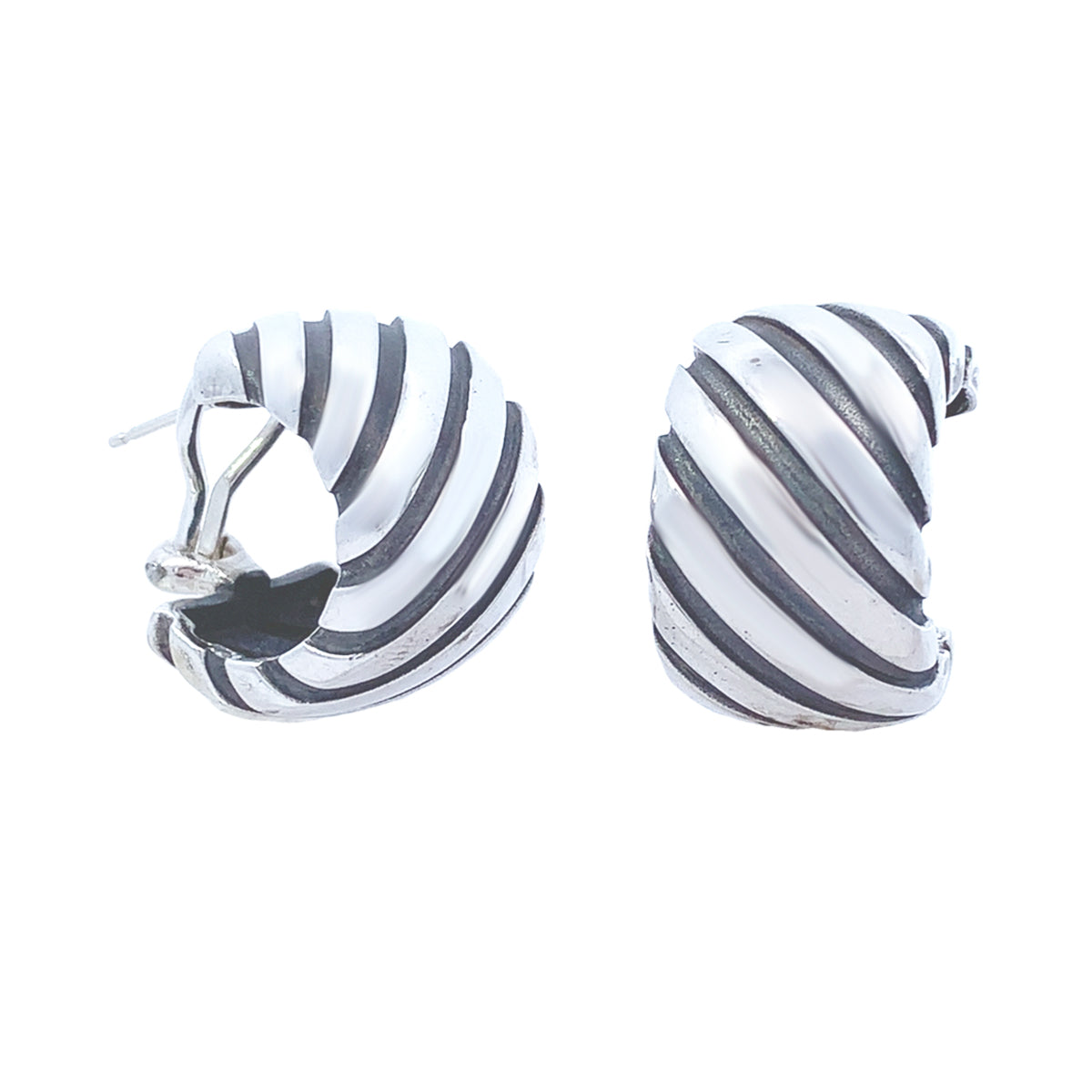 Sterling silver wide, heavy Vintage Tiffany ribbed hoop earrings
