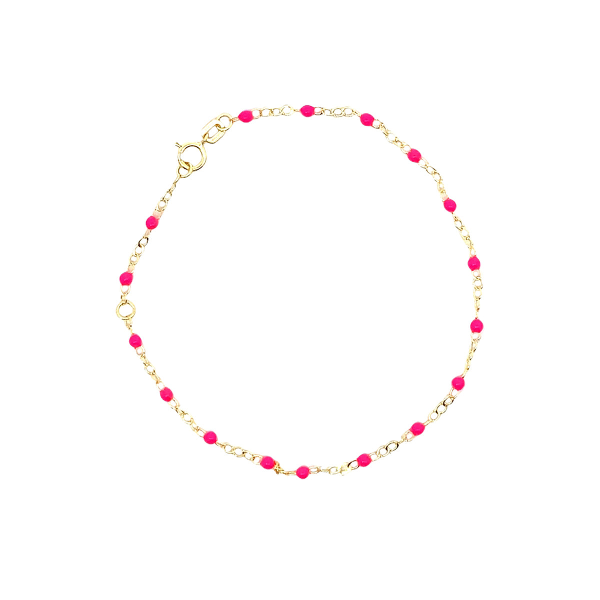 14k yellow gold 7.5" neon pink enamel bead station "Piatto" bracelet