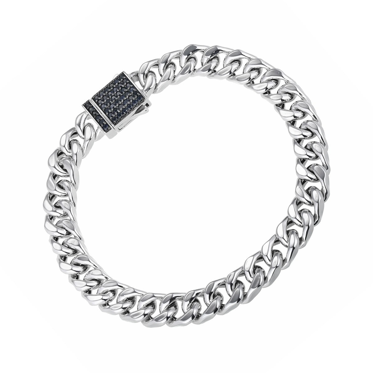 Sterling silver 7.5" link bracelet with pave genuine black sapphire clasp by Ethos