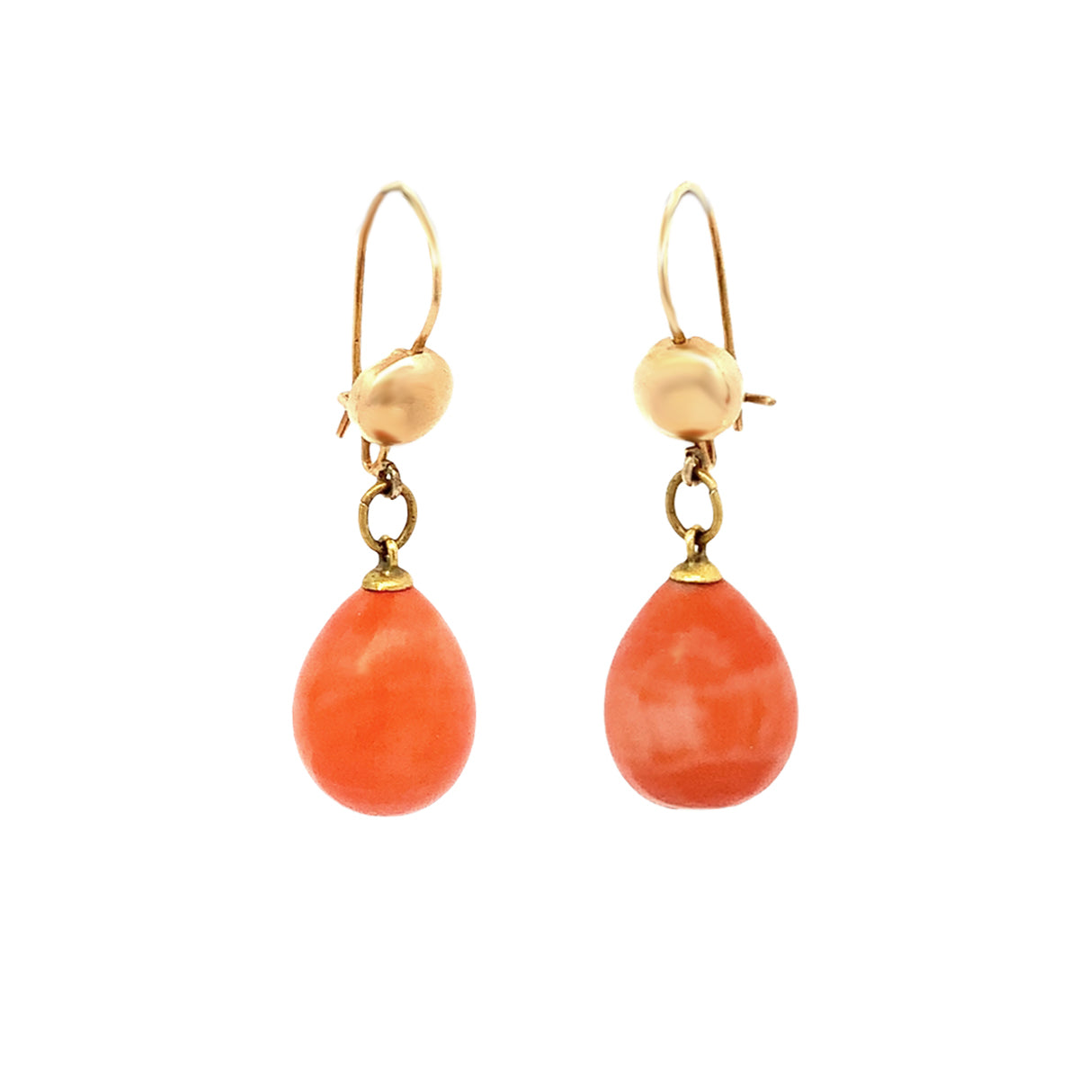 14kt yellow gold Vintage teardrop salmon color coral wire drop earrings