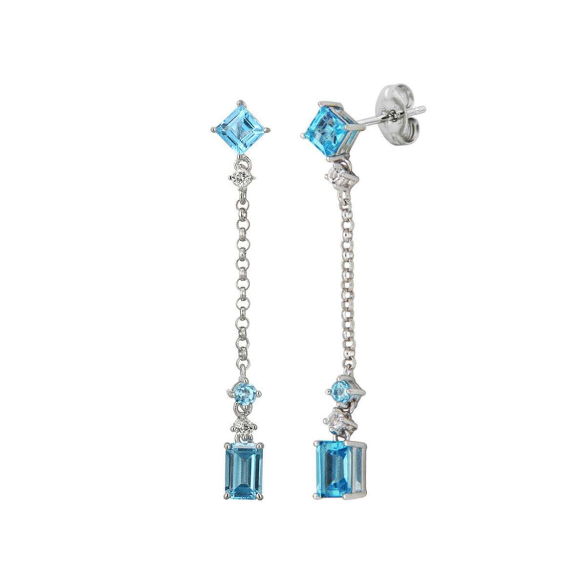 Sterling silver Swiss blue & white topaz "Sway Collection" chain drop earrings by Elle