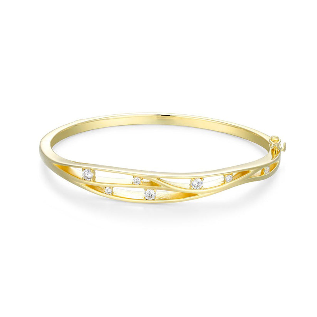 Gold plated and sterling silver wavy CZ "Between Elements" bangle by Elle Jewelry