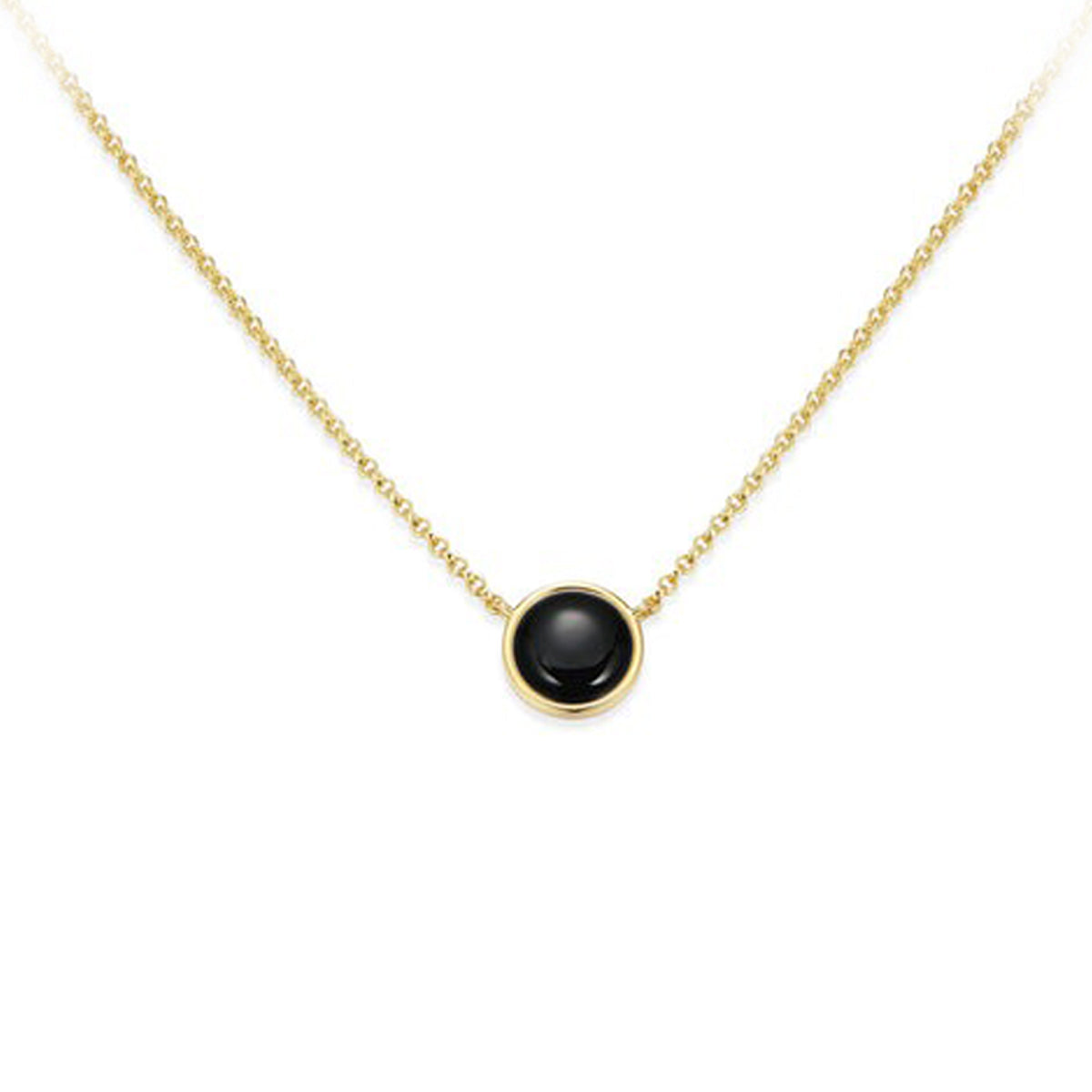 Gold plated/sterling silver 17-20" 10mm round onyx bezel-set solitaire "Lustre" necklace by Elle Jewelry