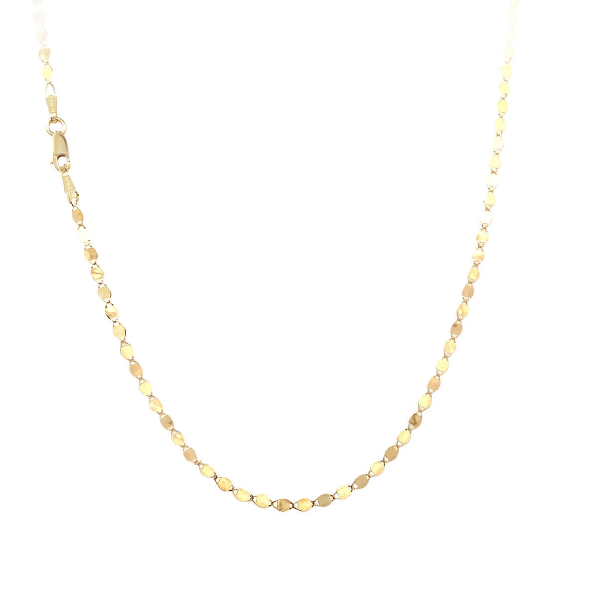 14kt yellow gold 24" narrow Vintage oval mirror link necklace
