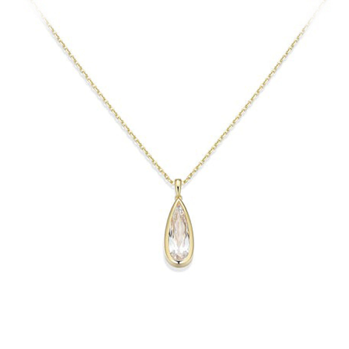 Gold plated on sterling silver 17-20" oblong pear CZ bezel-set "Lustre" pendant by Elle Jewelry