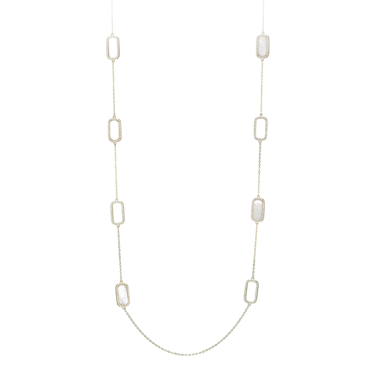 Goldtone (on sterling silver) 36" mother-of-pearl station necklace by Elle with CZ halos