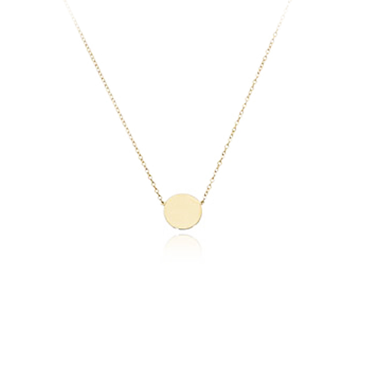 14k yellow gold 18" necklace with small 3/8" shiny disc (engraving extra)