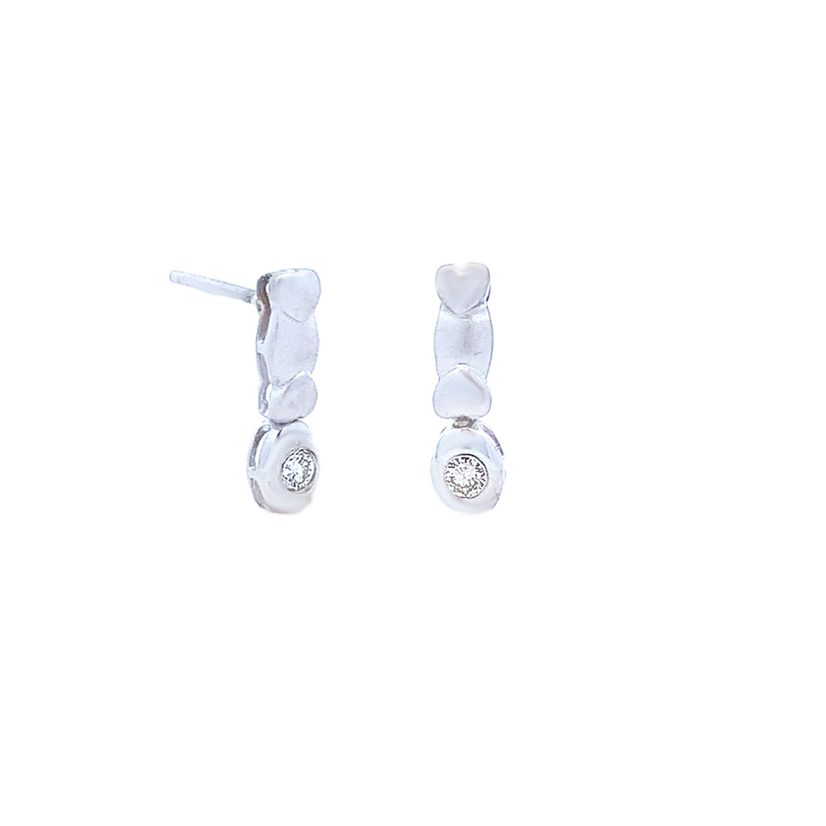 14k white gold petite satin finish Vintage drop earrings with hearts & 0.08ct diamonds