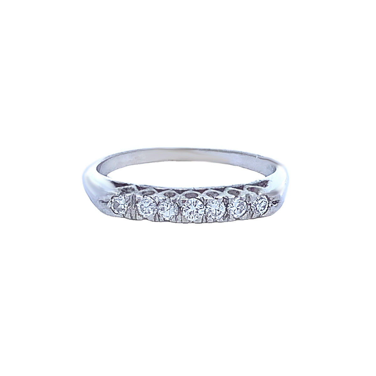 14k white gold Vintage 7-stone 0.21ct diamond fishtail-set wedding band, size 6.75