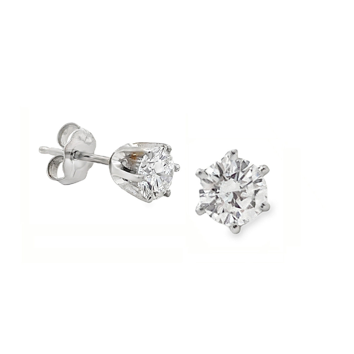 14k white gold .75cts round diamond stud earrings G-H/SI1 in 6-prong setting with friction posts