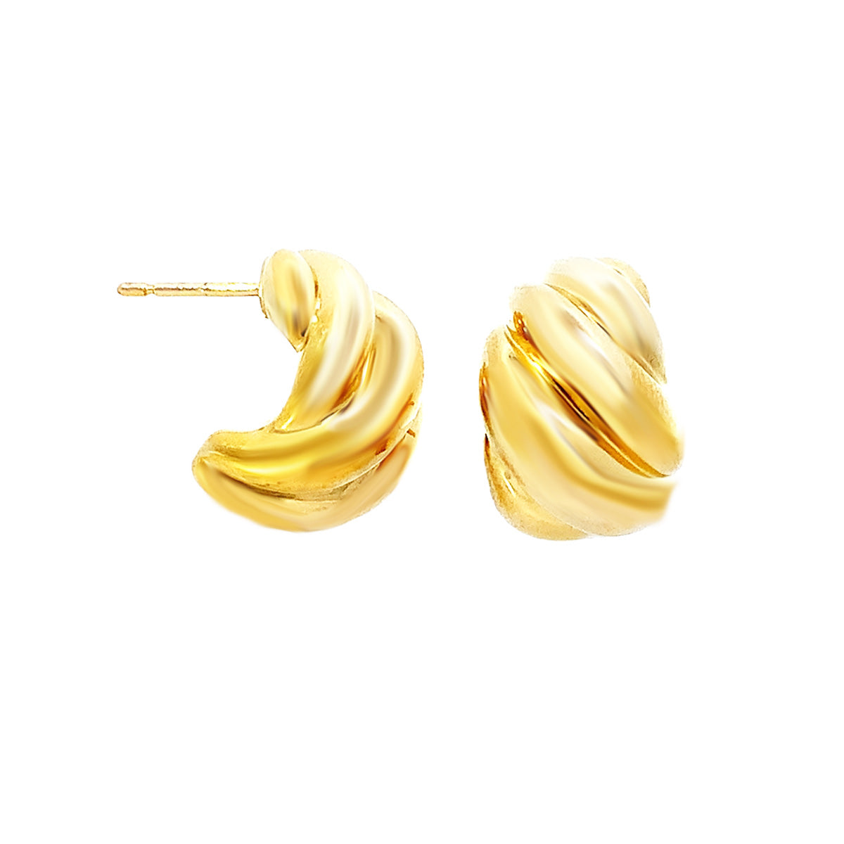 18kt yellow gold shiny Vintage wide-ribbed half hoops
