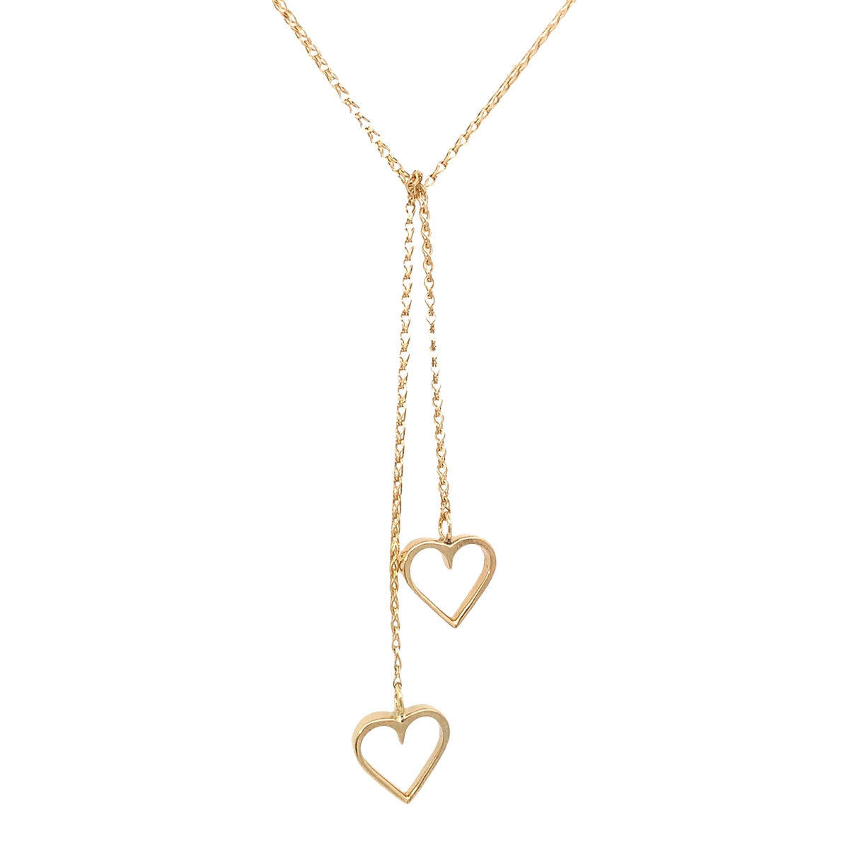 14kt yellow gold Vintage open-ended 2-heart lariat necklace (can be tied several ways)