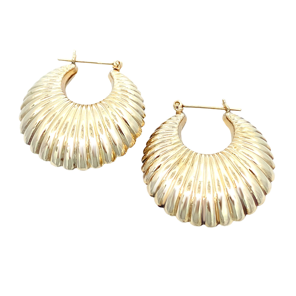 14k yellow gold bold 1" Vintage ribbed tapered hoop earrings