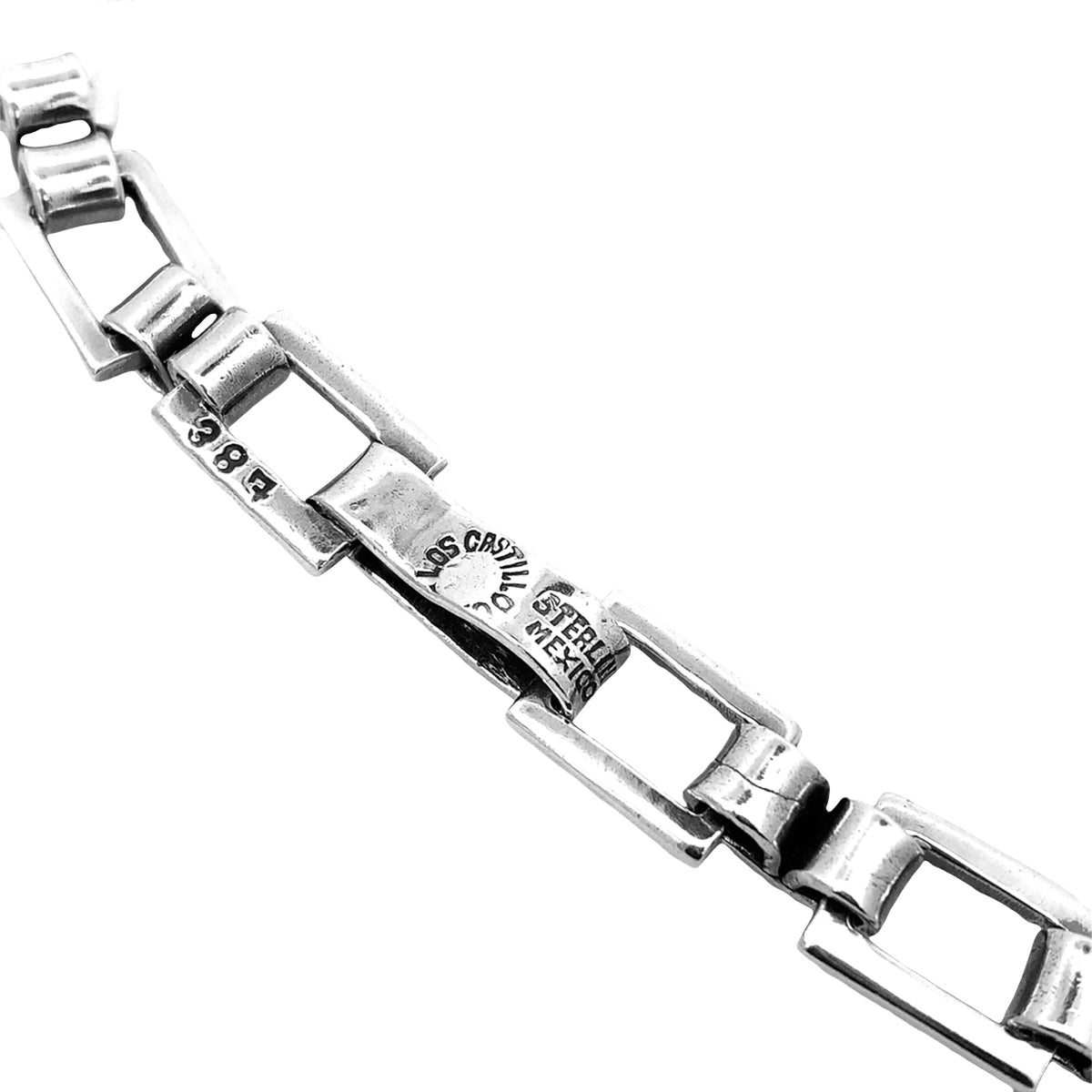 Sterling silver 16.5" Vintage "Taxco Mexico" square link necklace by Los Castillo with beaded trim (1950s).The our Castillo brothers founded their jewelry company in 1937. This necklace is also stamped with design #387.