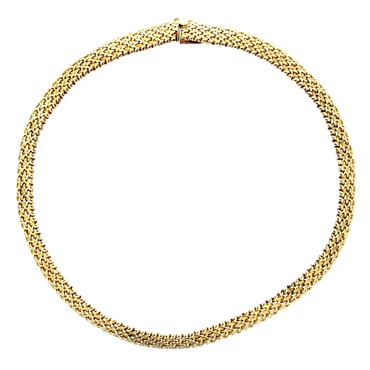 Beautiful 14kt yellow gold 16" wide, domed & textured heavy Vintage mesh necklace