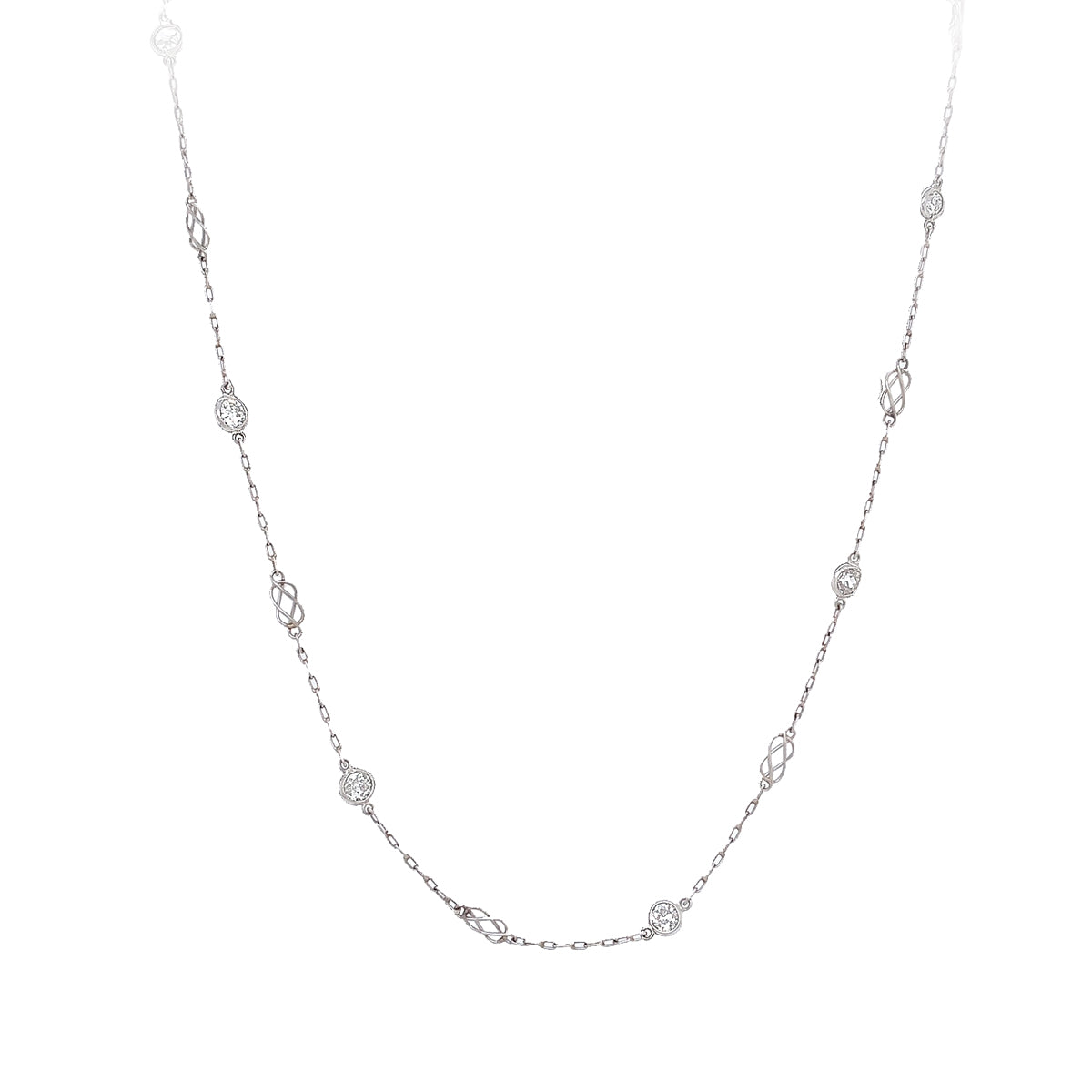 18k white gold 26" Vintage 1.83ct diamond and filigree link station necklace