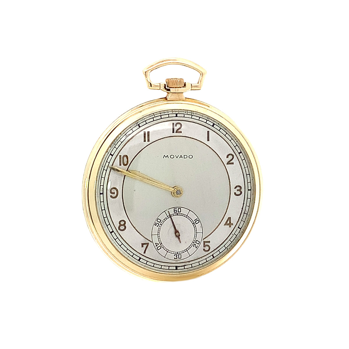 14kt yellow gold Vintage Movado manual-wind pocketwatch with Deco dial