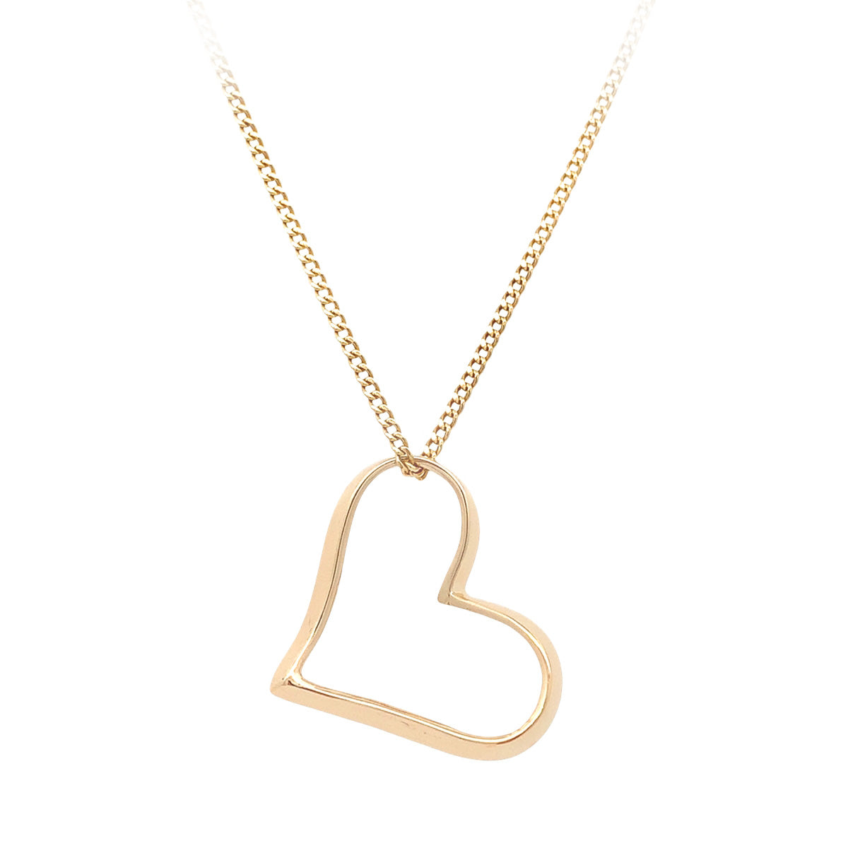 14kt yellow gold 21" Vintage 1" open heart pendant on curb chain