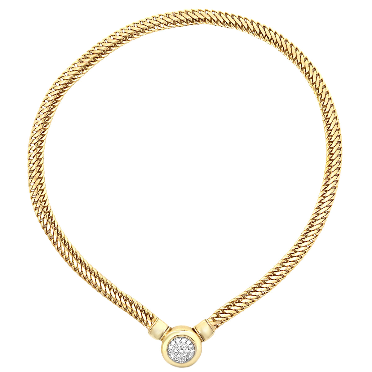 14kt yellow gold 17" Vintage 0.40ct pave circle necklace with domed double curb chain