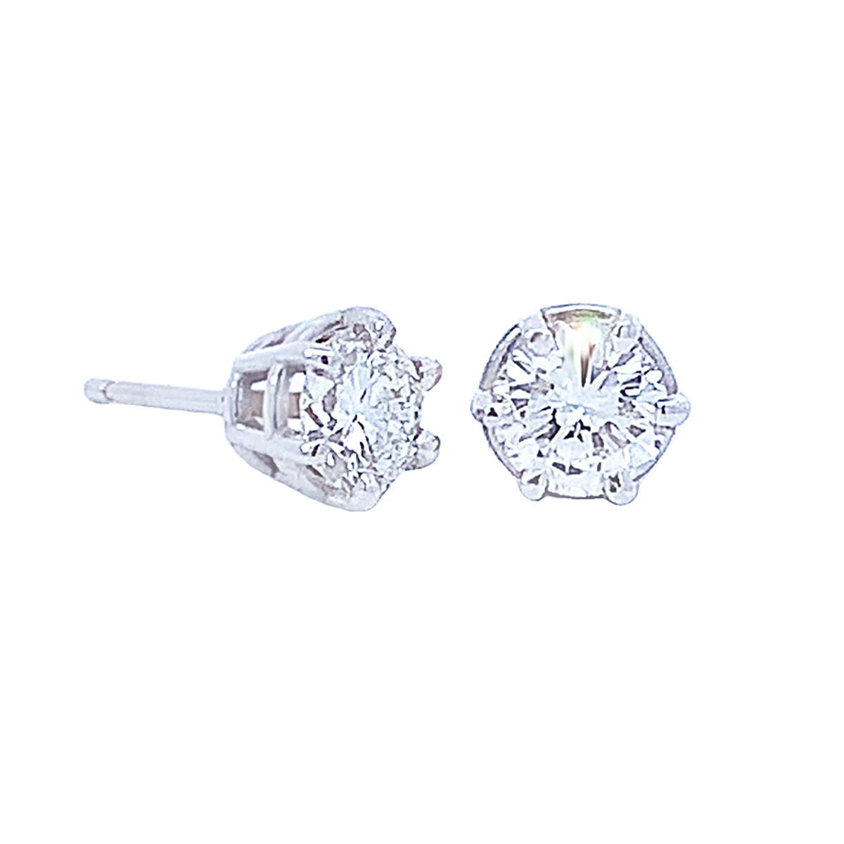 14k white gold Vintage 6-prong 1.20ct diamond stud earrings, G-H/SI1