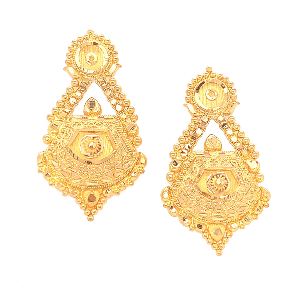 18-22kt yellow gold Vintage beaded & diamond-cut drop earrings with 18k posts & backs