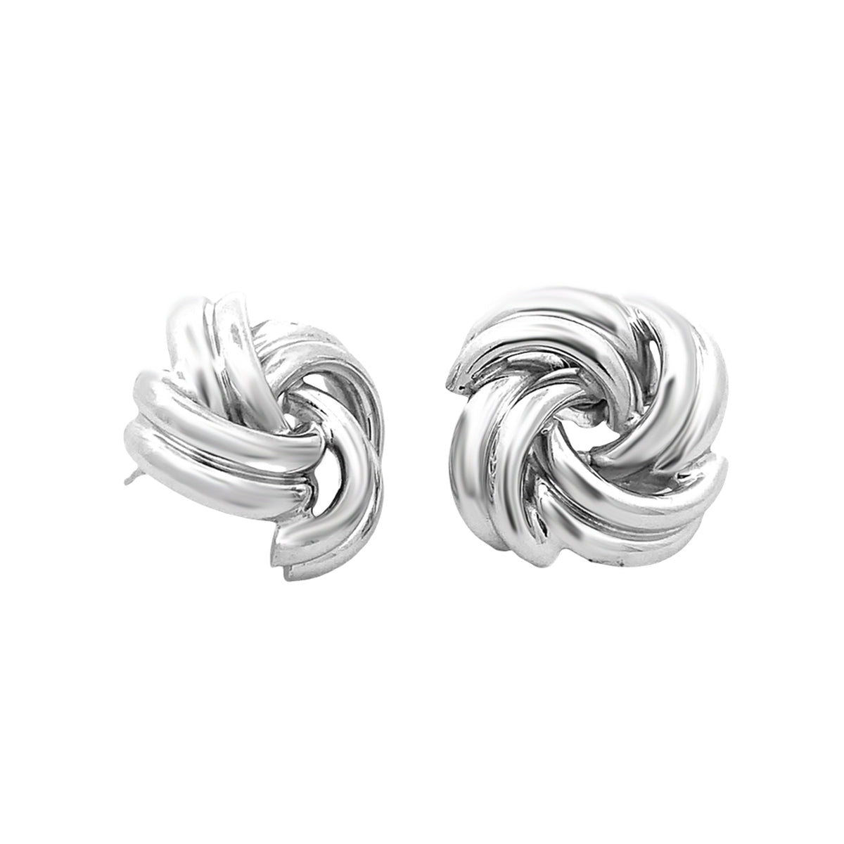14k white gold 14mm Vintage shiny flat knot stud earrings