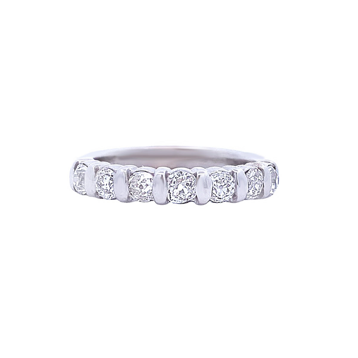 14k white gold 1.12ct 7-diamond bar-set wedding band, Size 7.5