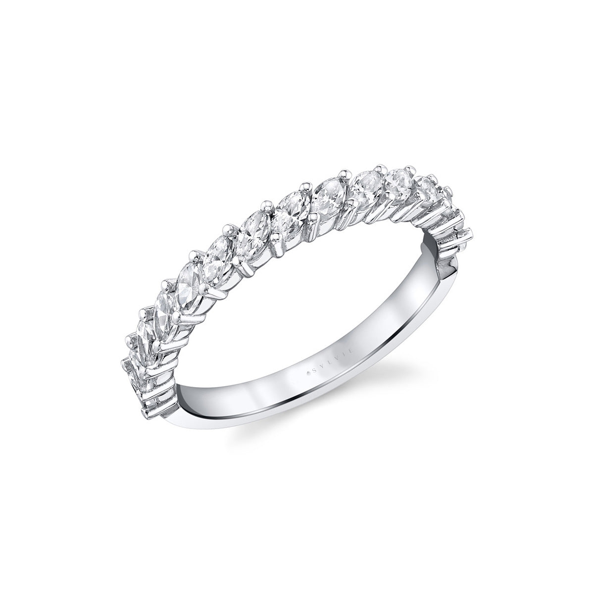 14k white gold 0.53ct marquise diamond Shared-Prong diagonal band, Size 6.5