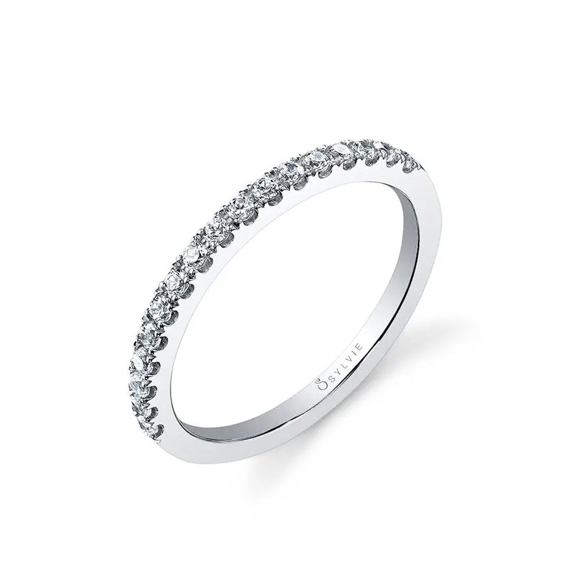 14k white gold narrow 0.29ct diamond prong-set diamond wedding band, size 6.5