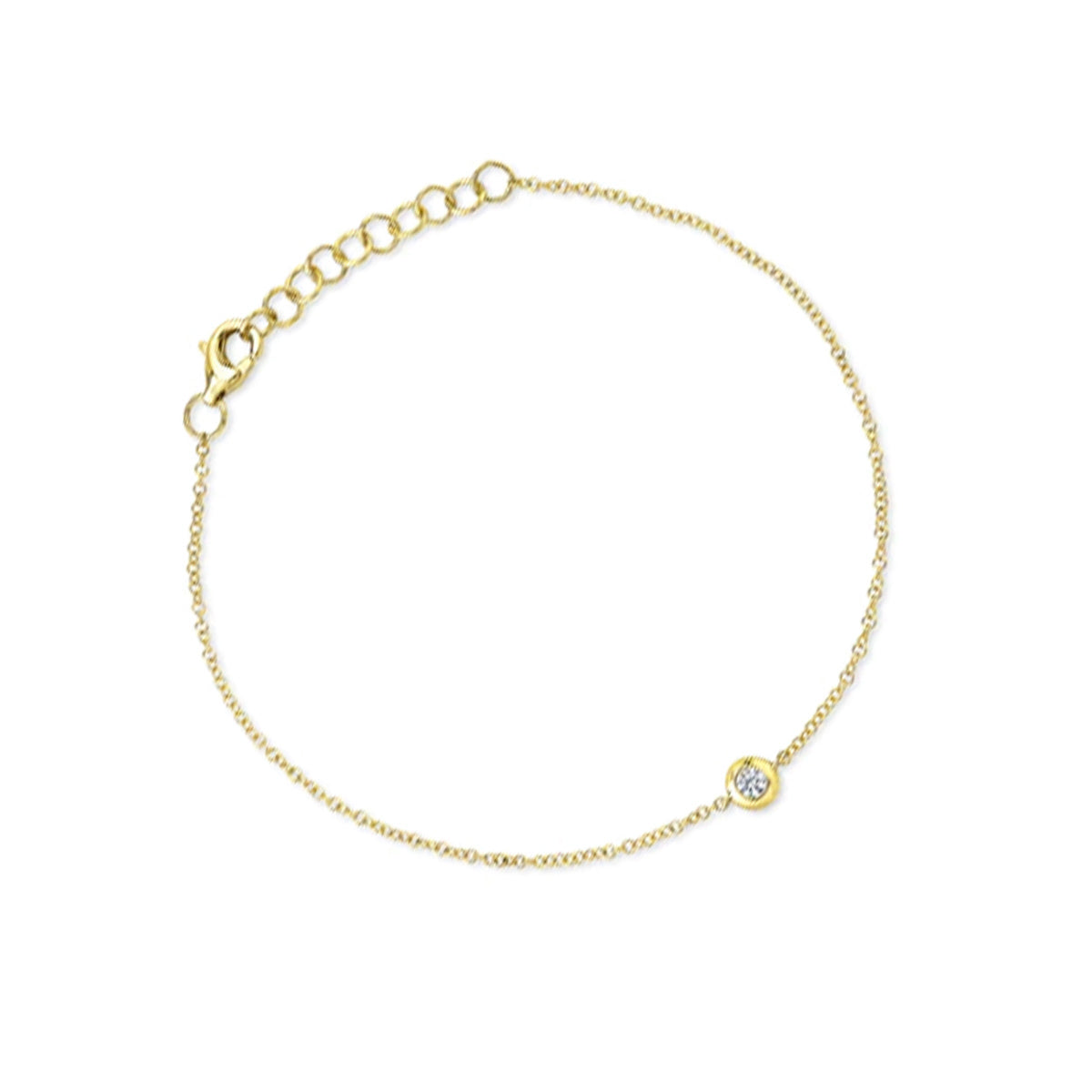 14k yellow gold thin chain bracelet with single 0.06ct bezel-set diamond by Shy Creation