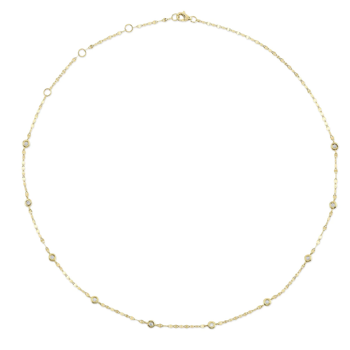 14kt yellow gold 18" 0.20ct diamonds-by-yard necklace by Shy Creation with Mirror chain